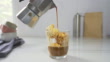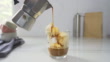 Homemade Affogato, Italian Moka coffee pot, affogato is a dessert with coffee as a base ingredient typically scooping a scoop of gelato or vanilla ice cream into a cup. Then pour one shot of hot espresso. - 4K stock video