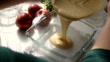 Homemade pastry. Woman mixing cake ingredients and pouring it in to the glass ovenware - HD stock video