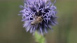 Honeybee on southern globethistle flower - slow motion