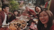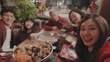 Hong kong chinese new year multi generation family selfie at reunion dinner at home - 4K stock video