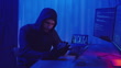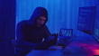 Hooded hacker stealing data using a smartphone. - 4K stock video