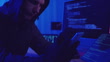 Hooded hacker stealing data using a smartphone. - 4K stock video