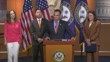 House Democratic Caucus Chair Pete Aguilar says answering a reporter question at a weekly news conference that Joe Biden's leadership on border issues has resulted in a decrease in asylum claims at the southern border, highlighting his balanced approach of securing the border while offering pathways for work permits to long-term residents and certain immigrants.