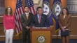 House Democratic Caucus Chair Pete Aguilar says answering a reporter question at a weekly news conference that Democratic leadership's focus is on regaining control of the House by securing 218 votes in November, rather than intervening in primary races, and expresses support for both outgoing Jamaal Bowman and the new Democratic nominee George Latimer.