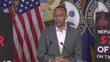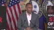 House Democratic Leader Hakeem Jeffries of New York tells reporters at a news conference that he had not evaluated articles of impeachment introduced that day by Michigan Democrat Shri Thanedar against President Trump, and did not indicate whether leadership actively discouraged members from introducing such articles.