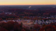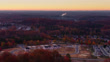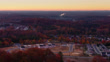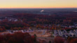 Leftward aerial view from above Burlington, North Carolina tract housing construction in Alamance County at sunrise.