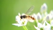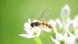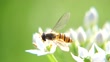 Hoverfly with chinese chive flower under sunshine - HD stock video