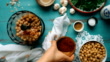 How to Make Hummus? (Overhead Shot) - Adding Red Pepper Powder - 4K stock video
