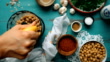 How to Make Hummus? (Overhead Shot) - Squeezing Lemons with Hand - 4K stock video