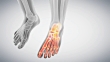 Human foot bones, including the metatarsals of the ankle region and the long phalanges of the sole and toes, animation.
