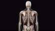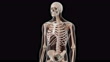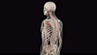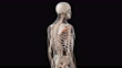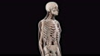 Human skeleton rotating against a black background, showing the teres minor muscles in the shoulder, animation
