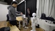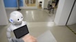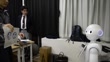 Humanoid robot Pepper, developed by SoftBank Corp.'s Aldebaran Robotics unit, follows a diagram held up by an attendee during a Softbank developer's workshop for students and robot enthusiasts in Tokyo, Japan, on Wednesday, March 4, 2015, An attendee speaks to Pepper robot and it responds with a nod