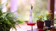 Hummingbirds at a feeder in the springtime. Boston fern and other spring flowers surround the feeder. Also see our stills from this shoot.