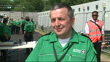 Pat Halpin (St Johns Amblulance) interview SOT/ people looking at suntan lotion on display at St John's Ambulance stall in park