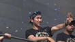 LOS ANGELES, CALIFORNIA - NOVEMBER 3: (EDITORS NOTE: audio/music licensing is not included.) Hyeseong Kim #6 of the Los Angeles Dodgers waves to fans during the Los Angeles Dodgers World Series Parade on November 03, 2025 in Los Angeles, California. (Footage by Lucas Mayer/Getty Images)