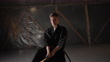 Iaido master, performing some interesting Iaido kates with a sword, while wearing traditional kimono