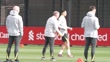 KIRKBY, ENGLAND - MARCH 1: Ibrahima Konate and the rest of Liverpool F.C players perform passing drills during a training session ahead of their UEFA Champions League match against PSG at AXA Training Centre on March 1, 2024 in Kirkby, England. (Footage by Niche Sport Media via Getty Images)