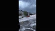 (LOOP) Ice floats on a flooded road as a vehicle passes by on August 5, 2024 in Calgary, Canada. Damage was reported at Calgary International Airport domestic terminal building due to hail and heavy rainfall. (Footage by @ChrisbWells/Spectee via Getty Images UGC)