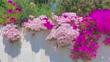 Purple Ice Plant (Delosperma cooperi) growing on a whitewash wall in Aegean Turkey.