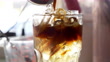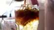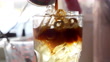 Close-up shot of iced americano being mixed with lemon juice and honey.