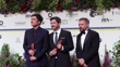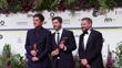 BERLIN, GERMANY - MAY 12: Ilker Çatak (L), Johannes Duncker (C) and guest pose after the duo won the Lola award for Best Screenplay during the 73rd Lola - German Film Award at Theater am Potsdamer Platz on May 12, 2023 in Berlin, Germany. (Footage by Christian Ender/Getty Images)