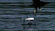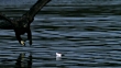 Immature Bald Eagle attempts to grab Salmon carcass from water surface. (Slight vertical lines and colour artifacts visible throughout) - HD stock video
