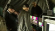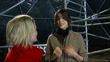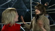 Music: Imogen Heap to perform by moving hands through the air; Men setting up recording equipment in stage tent for 'Me, The Machine' concertImogen Heap (Songwriter) set up shot / interview with reporter in shot SOT