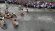 IBAJAY, PHILIPPINES - JANUARY 26: In an aerial view, people covered in black paint with curly wigs perform during the Ati-Atihan street dancing competition on January 26, 2024 in Ibajay, Aklan, Philippines. Ati-Atihan began in the 13th century to celebrate the peace formed when the Malays arrived on the island of the Aetas to find a new place to settle. The festival became associated with Santo Niño and Christianity during Spanish rule of the Philippines.ÌýThe coloring of the skin used during this festival predates the use of blackface in the West and is not meant to insult but to honor the Ati people. (Footage by Sherbien Dacalanio/Getty Images)