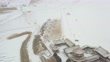 DUNHUANG, CHINA - FEBRUARY 17: In an aerial view, snow falls on Crescent Lake on February 17, 2022 in Dunhuang, Gansu Province of China. The popular lake was refilled to achieve its original depth. (Footage by Xu Haiyang/VCG via Getty Images)