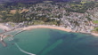 LYME REGIS, UNITED KINGDOM - OCTOBER 25: In an aerial view, the Lyme Regis Harbour and sea wall stretching out into the English Channel are seen on October 25, 2022, in Lyme Regis, United Kingdom. The Cobb pier has been featured in numerous films and TV shows, including Jane Austen's "Persuasion" and "The French Lieutenant's Woman" (Footage by David Goddard/Getty Images).