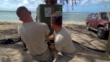 NORTHERN MARIANA ISLANDS - NOVEMBER 16: In this handout footage provided by U.S. Department of Defense, Airmen with the 36th Civil Engineer Squadron, assigned to Andersen Air Force Base, Guam, set up a new clean water distribution site at PakPak Beach, San Antonio, Saipan, Commonwealth of the Northern Mariana Islands. The new distribution site will provide residents with clean drinkable water as part of the Super Typhoon Yutu relief efforts. (Footage by U.S. Department of Defense/Milmotion via Getty Images)