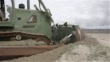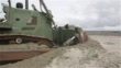 Soldier pushing sand with military bulldozer at Camp Pendelton wildlife reserve