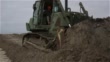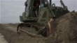 Soldier pushing sand with military bulldozer at Camp Pendelton wildlife reserve