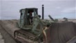 Soldier reversing military bulldozer over sand at Camp Pendleton reserve