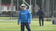 India training; ENGLAND: London: Lord's Cricket Ground:EXTDuncan Fletcher (India coach) along / various shots of India players warming up, including Ishant Sharma / Fletcher chatting to player / players in team huddle / players warming up and playing football / team huddle / Mahendra Singh Dhoni carrying bag / general views of India net practice