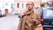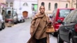 MUNICH, GERMANY - OCTOBER 29: Influencer Sophia Thorer, wearing a caramel colored coat by Mango, an caramel colored overshirt by Arket, black pants by Zara, black boots by LiuJo and and a brown bag by Hermes, during a streetstyle shooting at on October 29, 2021 in Munich, Germany. (Footage by Streetstyleshooters/Getty Images)