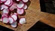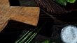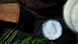 Okroshka, Russian traditional cold soup with kvass and ingredients. High angle overview