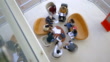An academic group meeting in natural light with bright furniture to discuss their findings.