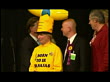 CLEAN: Interior shots candidates gathered on stage as election results read out. General shots John Howell Conservative MP makes speech. General shots Stephen Kearney, Liberal Democrats candidate talk at microphone. General shots Bananaman Own, Monster Raving Loony candidate talks on stage.