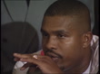 CLEAN: Interior shots Donavon Razor Ruddock answers question on drug testing after his team publicly accused Lennox Lewis of using performance enhancement drugs at their pre-fight press conference for a WBC final eliminator on the 29 October, 1992 in London, England.