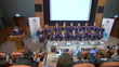 CLEAN: Interior shots of Mike Hay, Team GB Chef de Mission speaks at Winter Olympics Team GB presser with medallists Mike Hay, Jenny Jones, Lizzy Yarnold, Eve Muirhead, Anna Sloan, David Murdoch, Scott Andrews and Jon Eley on 25 February 2014 in London, United Kingdom