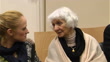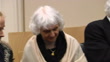 CLEAN: Interior shots of Oskar Groening sat in courtroom flanked by lawyers and witnesses including Eva Pusztai Fahidi, Auschwitz survivor and granddaughter Luca Hartai on April 22, 2015 in Hamburg, Germany.