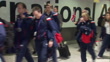CLEAN: Interior shots of Winter Olympics Team GB including Lizzy Yarnold, Eve Muirhead, Anna Sloan, David Murdoch and Mike Hay arrive back in London at Heathrow and pose for photos on 24 February 2014 in London, United Kingdom