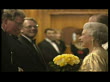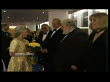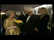 CLEAN: interior shots Queen Elizabeth II shaking hands with people from the arts in line up, including Charles Dance, Richard Griffiths & Diana Rigg, Prince Philip the Duke of Edinburgh following.