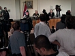 CLEAN: Interior shots Tariq Aziz speaks in news conference about United States not complying with UN resolution