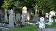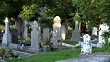 A peaceful evening view of tombstones in the Drumcliff cemetery where Yeats is buried