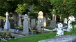 A peaceful evening view of tombstones in the Drumcliff cemetery where Yeats is buried