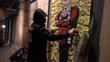 BARCELONA, SPAIN - FEBRUARY 07: Italian urban artist TvBoy places his new work on a wall on February 7, 2021 in Barcelona, Spain. The artist TvBoy has hung two new pieces in the center of Barcelona: "La Noche de las Elecciones" (Election Night), in reference to the upcoming elections in the Catalonia Parliament, and "Despicable me 4" referring to Putin as a villain after the imprisonment of Aleksei Navalni in Russia. (Footage by Cesc Maymo/Getty Images)