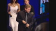 Ivor Novello Awards 2003: Awards presentation; ENGLAND: London: Grosvenor House Hotel:INTU2 (Bono, The Edge, Larry Mullen and Adam Clayton) from table up onto stage / Bono speech SOT / The Edge speech