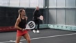 LONDON, ENGLAND - SEPTEMBER 27: Izzy Christiansen plays during the "Pro Am Padel Tour" photocall at Rocket Padel at Battersea Power station on September 27, 2024 in London, England. (Footage by David Sampedro/Getty Images)